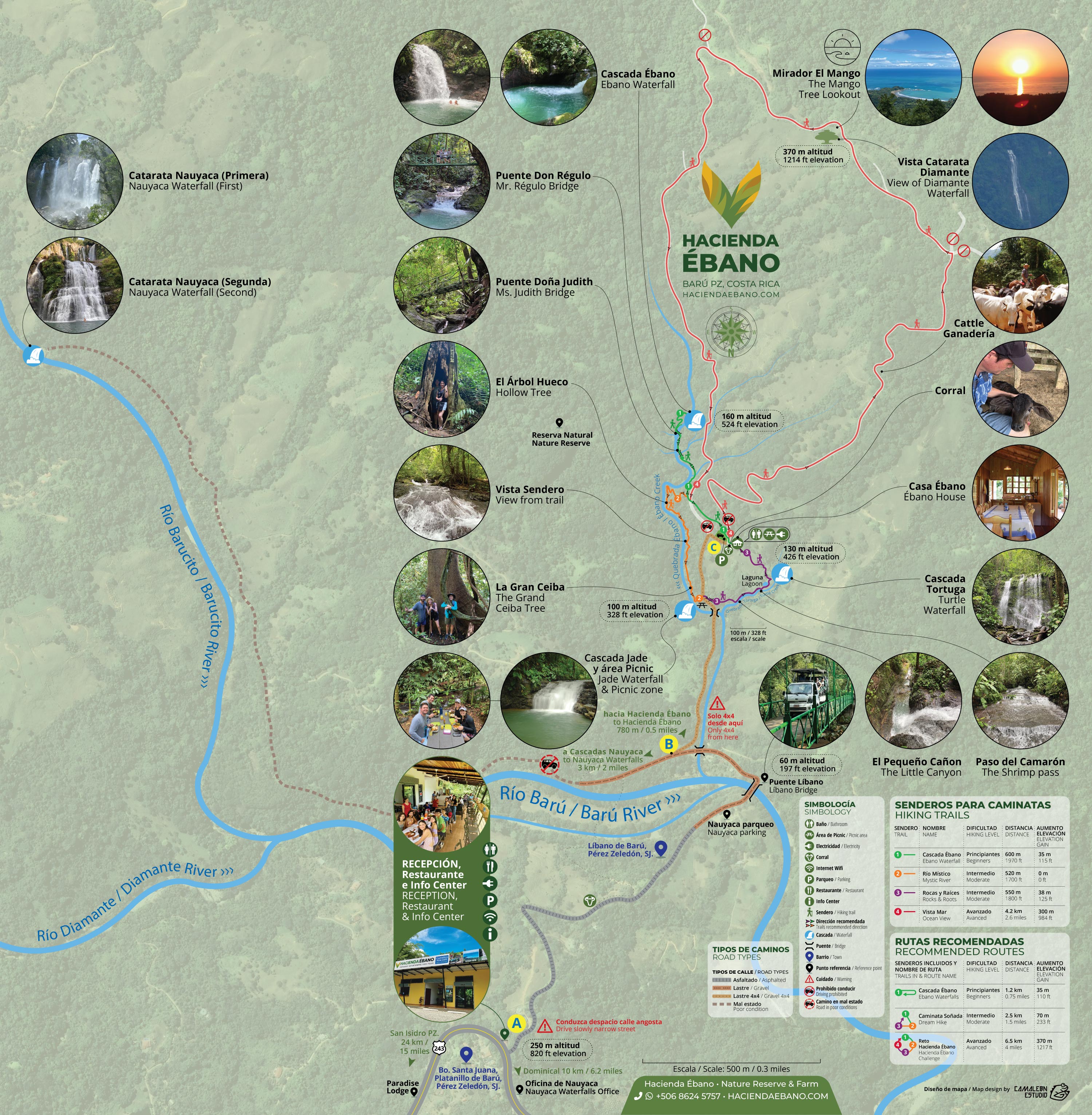 This Map Show the real escale of location and distances of Hacienda Ébano and Nauyaca Waterfall