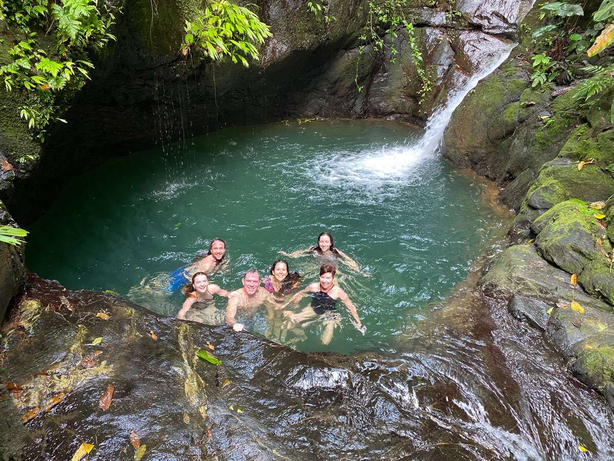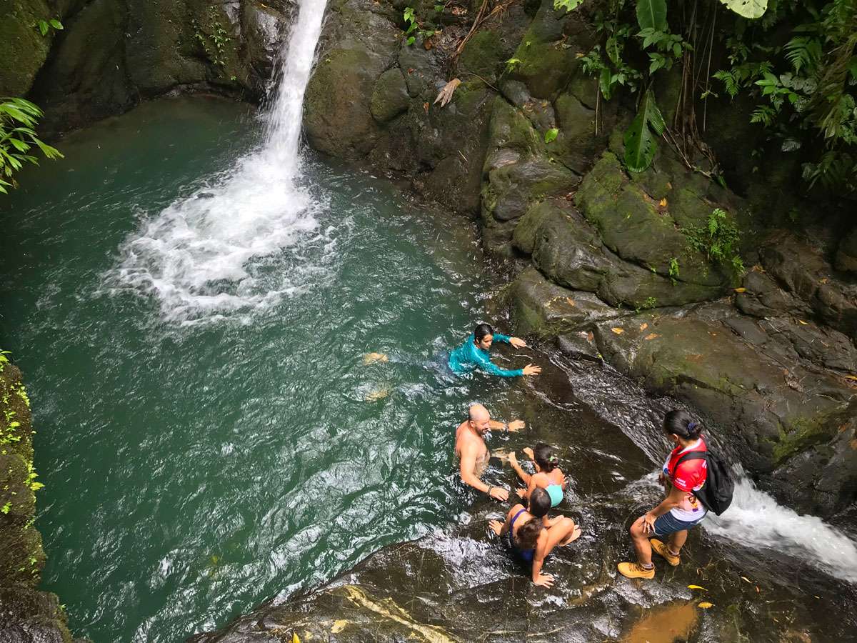 HIKING & EBANO WATERFALLS, Natural Reserve, short or medium hike in a beautiful path through the Rainforest. We will see five streams and cross 2 bridges, also will have the opportunity to appreciate wildlife such as colorful frogs, birds or monkeys among others (depends on season and animals behavior), also wide biodiversity, such as tropical plants and huge trees. At the end of the trail is the Ebano Waterfalls, a double waterfall hidden in the Rainforest. The first waterfall has a pool of 13 feet / 4 meters deep, it's a huge hole in a one-piece rock, which the water through hundreds of years made it, it's safe for a swim and deep enough to jump from 7 meters / 20 feet. The second waterfall has a wider pool, with a depth from very low to 2 meters / 6 feet, perfect for families with kids.