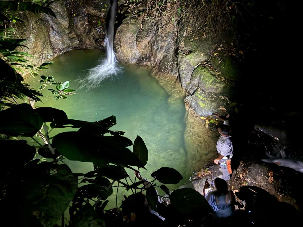 Your local guide will take you on a gentle and well-maintained hiking path in the nature reserve, where you can spot a variety of wildlife, including the Red Dart Poison Frog, spiders, centipedes, cicadas, small snakes, and various tropical plants. The path is also dotted with creeks and bridges, leading to the beautiful Ébano Waterfall, visiting the waterfall at night is a magical experience. 2 hours and 20 minutes.