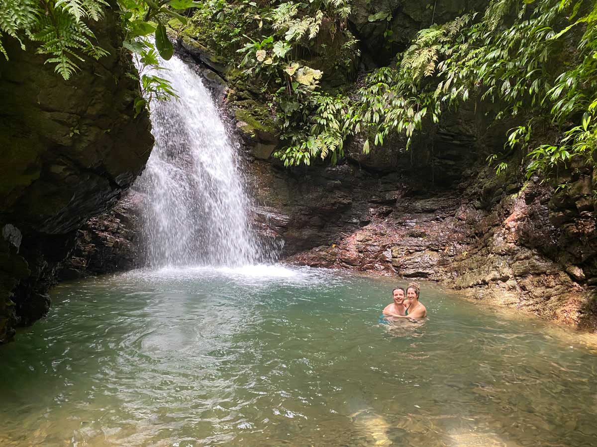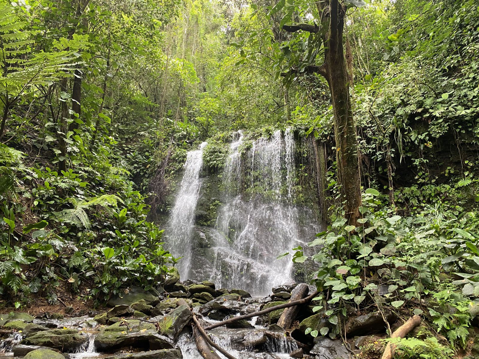 An easy trail (#1), with a total distance of 1.2 km (0.75 miles). It offers a peaceful hike through the Rainforest with only a couple of short hills (35m / 110 ft total elevation gain). The entire trail is shaded, with bridges and ropes for security. The Ébano Waterfall is located at the end of this trail.