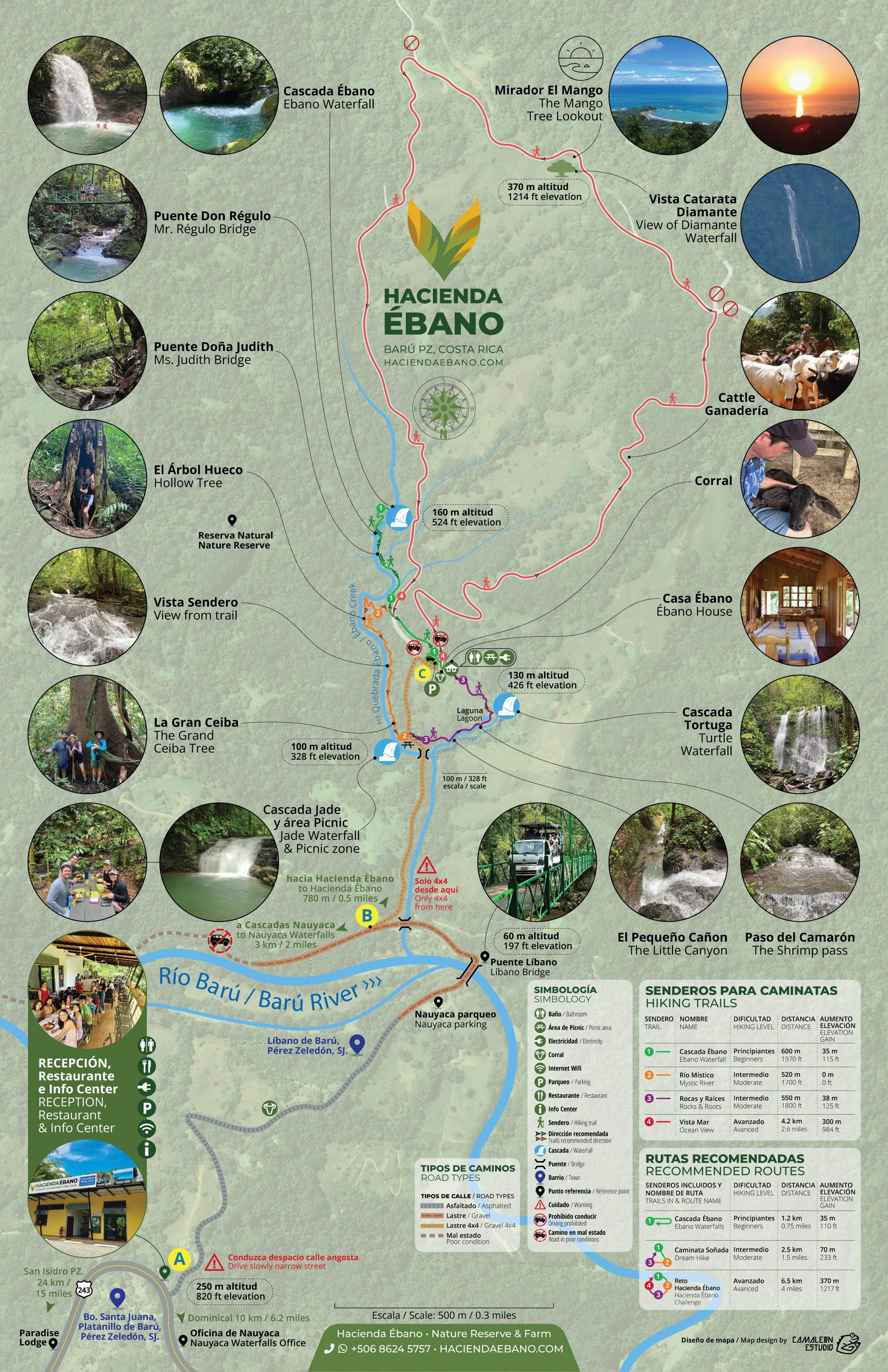 This Map Show the real escale of location and distances of Hacienda Ébano and Nauyaca Waterfall