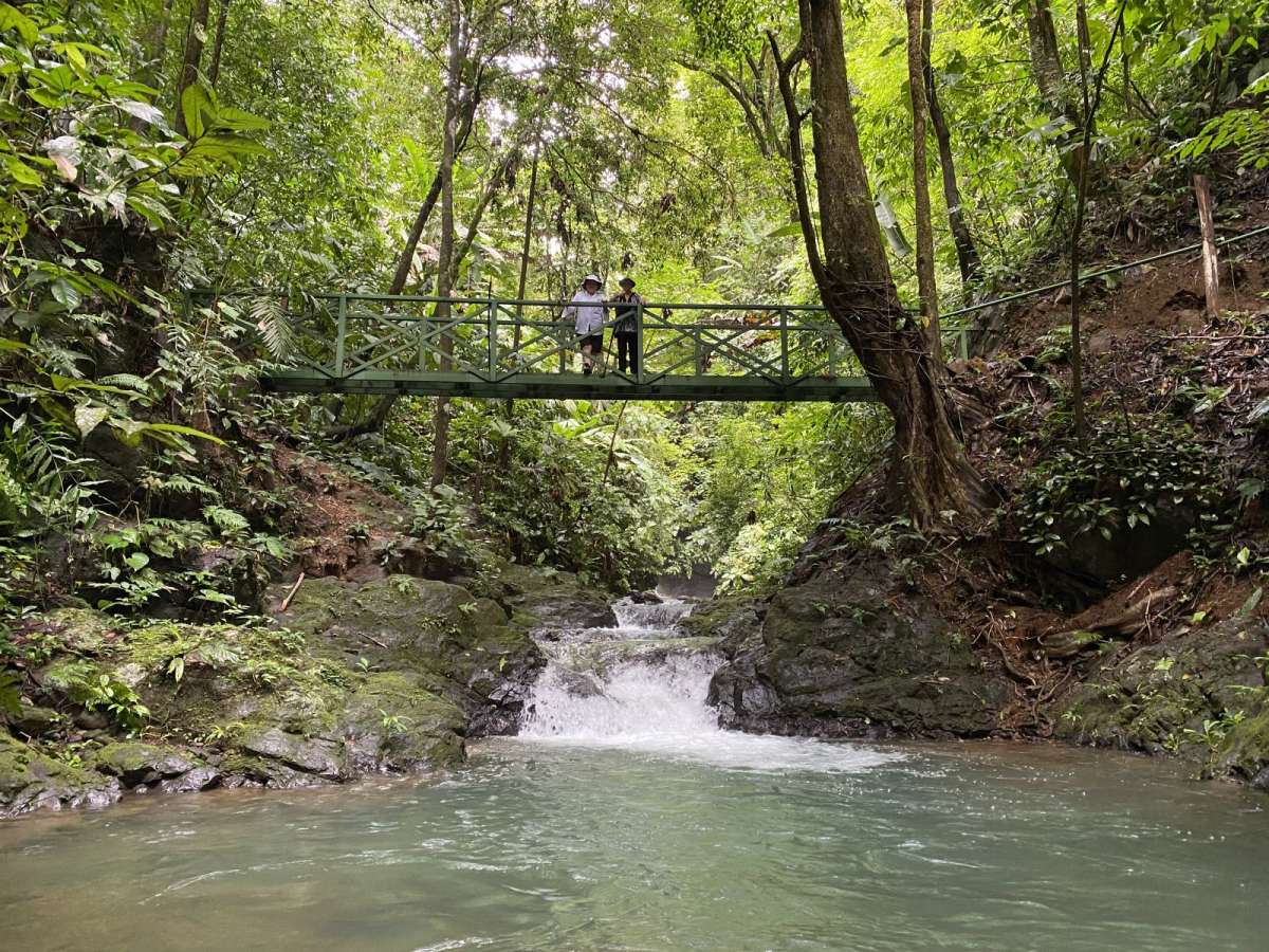 Hiking at Hacienda Ébano, a Costa Rican Natural Reserve and Ranch. The customer will experience a 1km / 0.6-mile short hike or a 2.5km / 1.6 miles medium hike through the rainforest, 2 gorgeous waterfalls with natural pools, where is possible to swim, also stunning mountain views.