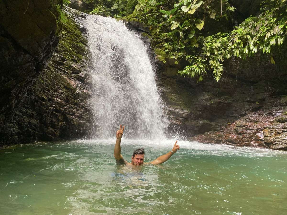 HIKING & EBANO WATERFALLS, Natural Reserve, short or medium hike in a beautiful path through the Rainforest. We will see five streams and cross 2 bridges, also will have the opportunity to appreciate wildlife such as colorful frogs, birds or monkeys among others (depends on season and animals behavior), also wide biodiversity, such as tropical plants and huge trees. At the end of the trail is the Ebano Waterfalls, a double waterfall hidden in the Rainforest. The first waterfall has a pool of 13 feet / 4 meters deep, it's a huge hole in a one-piece rock, which the water through hundreds of years made it, it's safe for a swim and deep enough to jump from 7 meters / 20 feet. The second waterfall has a wider pool, with a depth from very low to 2 meters / 6 feet, perfect for families with kids.