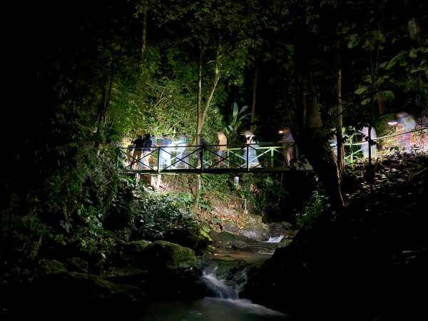 Your local guide will take you on a gentle and well-maintained hiking path in the nature reserve, where you can spot a variety of wildlife, including the Red Dart Poison Frog, spiders, centipedes, cicadas, small snakes, and various tropical plants. The path is also dotted with creeks and bridges, leading to the beautiful Ébano Waterfall, visiting the waterfall at night is a magical experience. 2 hours and 20 minutes.