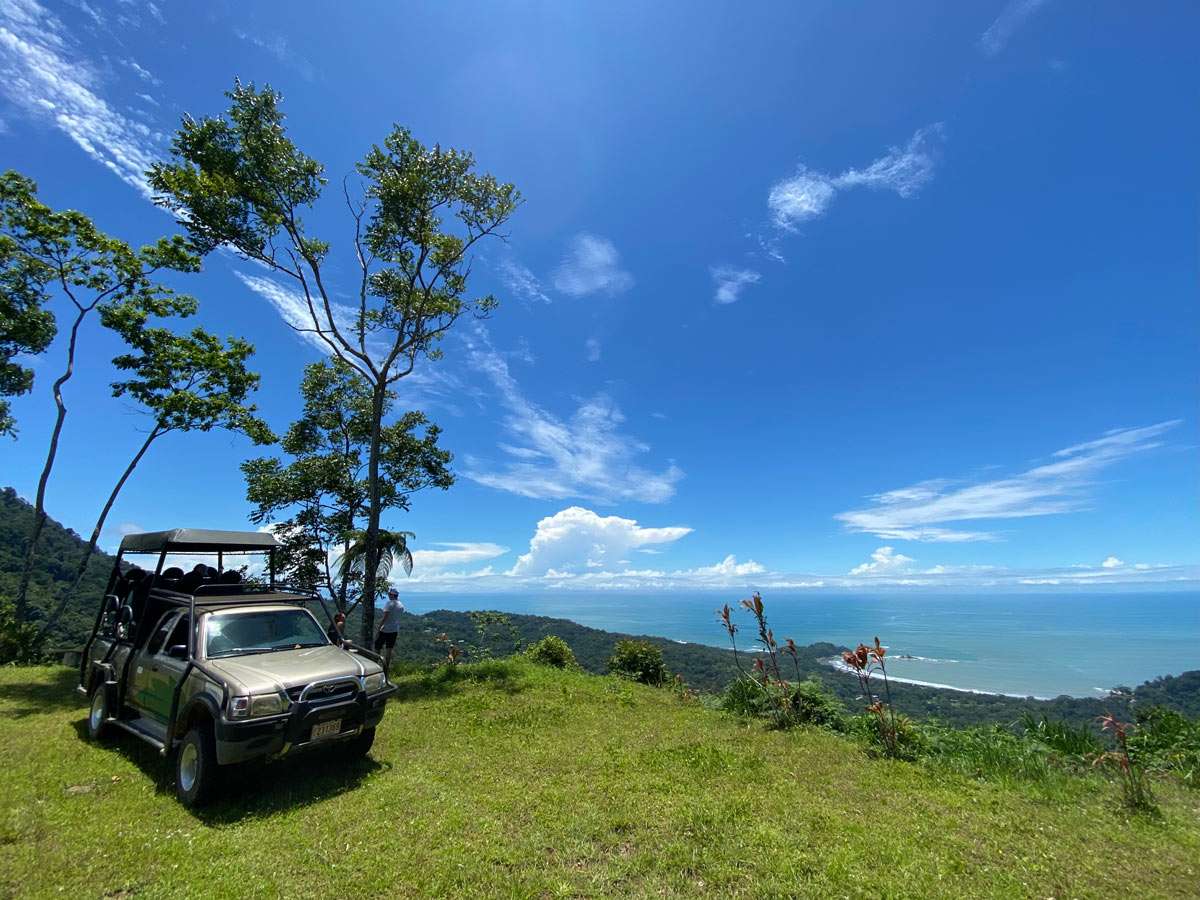 THE LOOKOUT Ocean and Mountains views, we will reach it by the safari truck, the Big Mango Lookout is a beautiful spot in the top of the mountain, we will enjoy the view to Punta Dominical Bay, Caño island, Diamante Waterfall, ant the blue mountains.